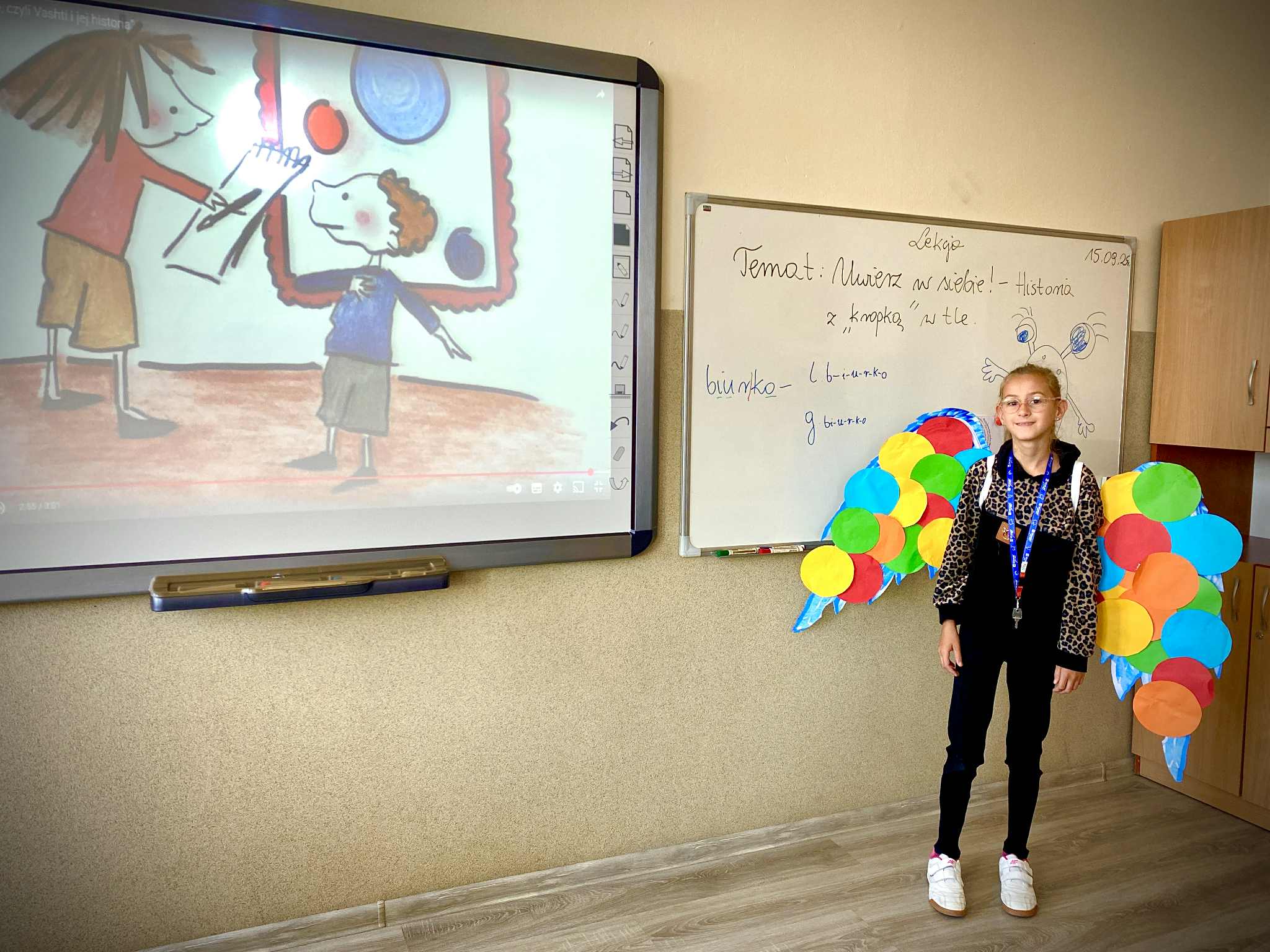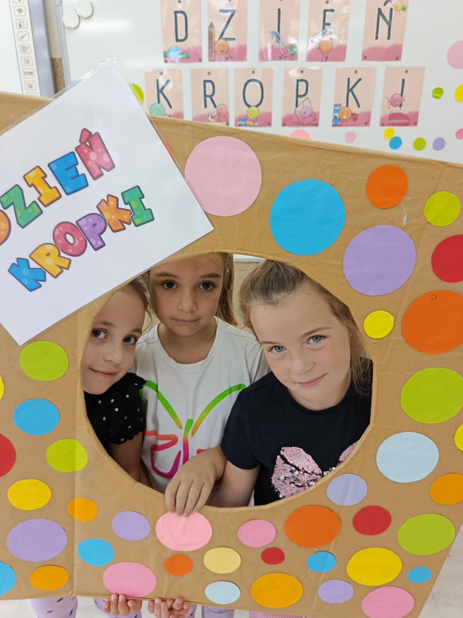 – uczniowie robili pamiątkowe zdjęcia w specjalnej ramce „Dzień Kropki”, utrwalając radosne chwile,