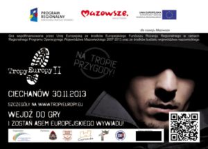 Rywalizacja w klimacie filmów szpiegowskich, atrakcyjne nagrody i obiekty współfinansowane z funduszy europejskich w tle – oto co czeka uczestników gry miejskiej „Tropy Europy II – na tropie przygody!” która odbędzie się w sobotę 30 listopada w Ciechanowie. Start: godz. 12.00, rejestracja graczy – 11.00. Organizatorem jest Mazowiecka Jednostka Wdrażania Programów Unijnych, partnerem i współorganizatorem m.in. Urząd Miasta Ciechanów. Nagrodą główną jest niezapomniane przeżycie – lot balonem nad Mazowszem dla czterech osób.